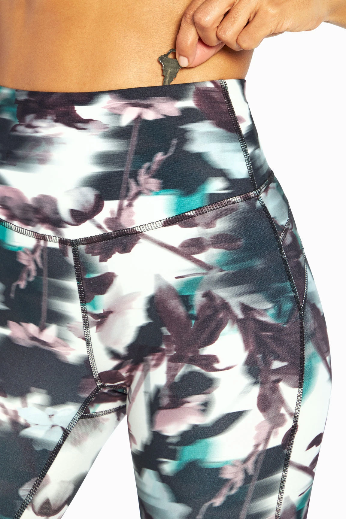 Get out in the sun for an active family day in these soft, breathable ankle leggings, featuring UV protection, moisture-wicking, 4-way stretch fabric, and hidden inner key pocket.