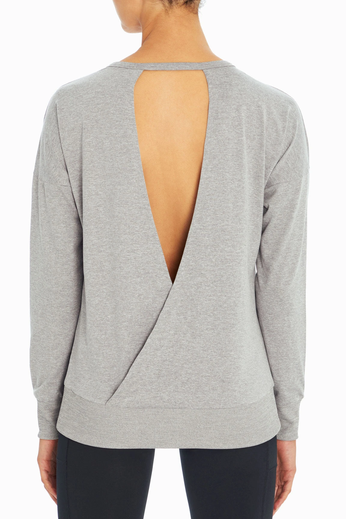 Curl up to a post-workout tea in this soft (inside and out!) pullover — with moisture wicking, ribbed, banded trim, and surplice back design with support strap, you’ll appreciate the comfort.